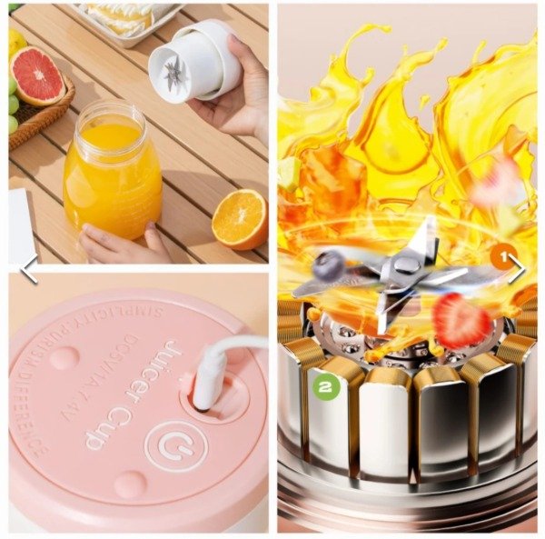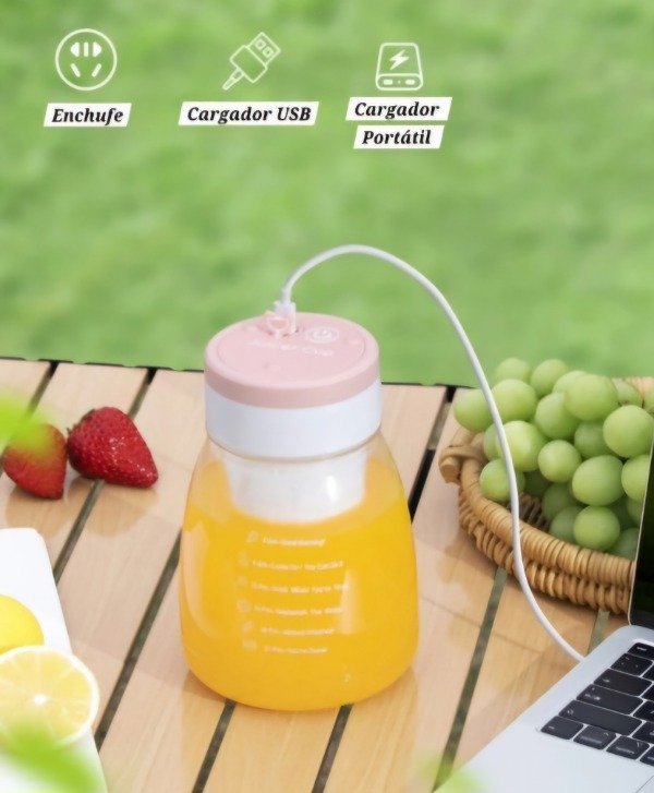 Licuadora o juguera personal que permite preparar batidos y jugos en cualquier lugar. Su diseño compacto y recargable por USB la hace ideal para usar en la oficina, el gimnasio, al aire libre o de viaje. Se carga fácilmente a través de un cable USB. Sirve para preparar batidos, licuados, mezclas de jugos, batidos de proteínas e incluso alimentos para bebés