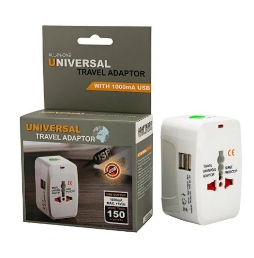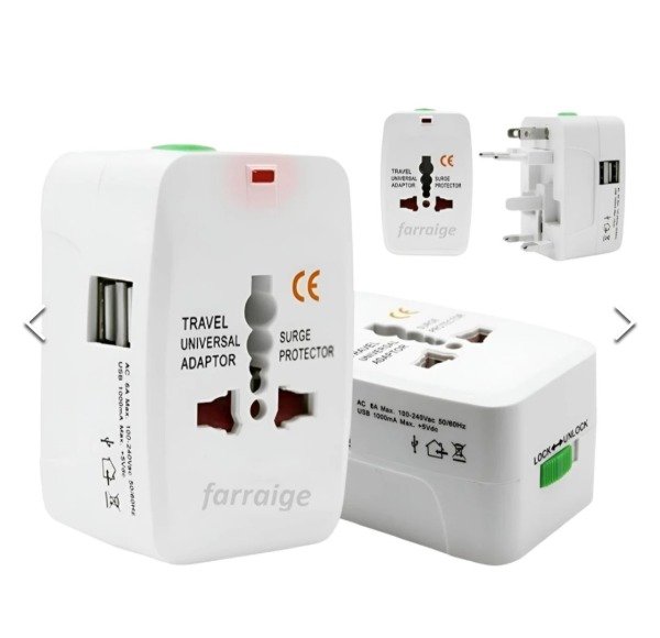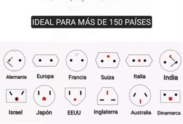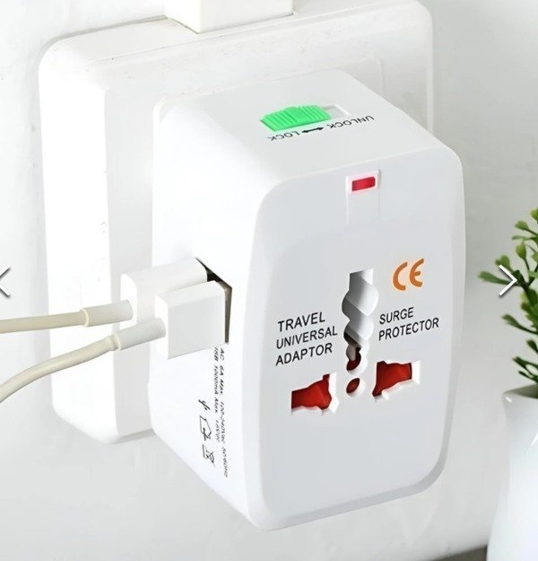 Adaptador universal, este puede aceptar todo tipo de enchufes en casi todo el mundo, te ayudará a proteger tus dispositivos de los diferentes suministros eléctricos en otros países. El dispositivo puede adaptar la energía y proporciona protección efectiva para ordenadores, celulares, tabletas y otros dispositivos eléctricos que lleves en tu viaje