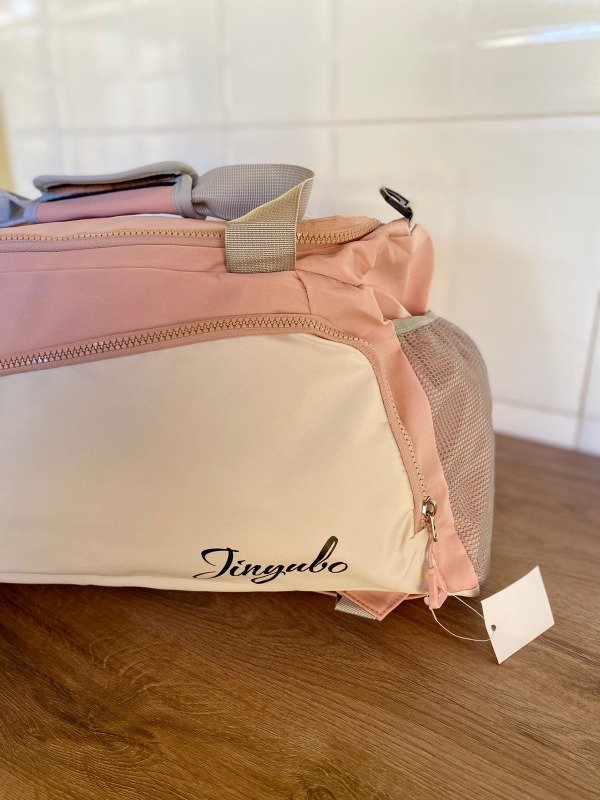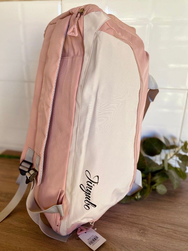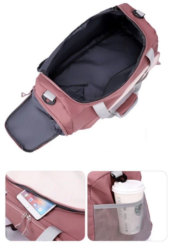 Cuenta con 3 compartimentos exteriores (un bolsillo red, uno para calzado y uno frontal multiuso), un compartimento principal que posee un bolsillo para ropa húmeda y una tira ajustable removible. Puede usarse como bolso o mochila. Ideal para deporte, uso diario y viajes